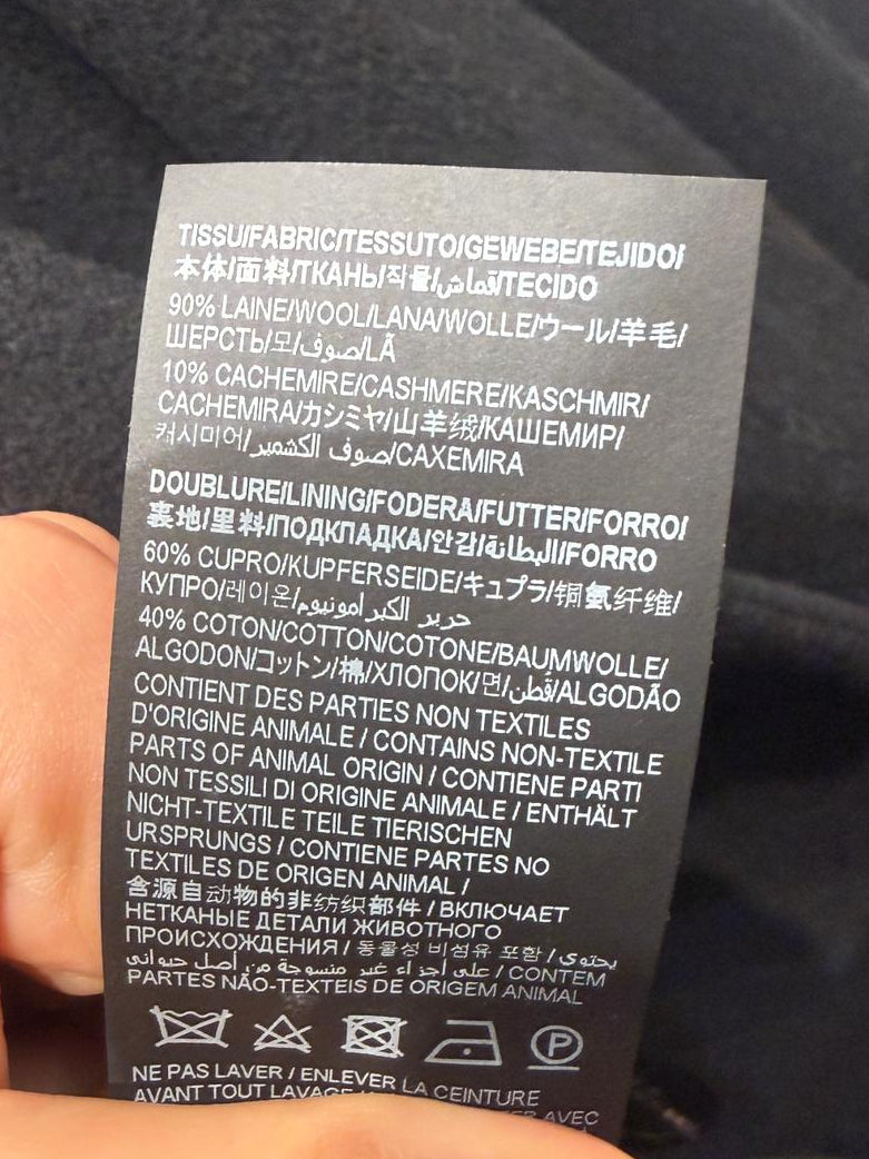 Cappotto Saint Laurent nero con taglio doppiopetto strutturato, realizzato in lana vergine, che offre una silhouette elegante e definita. Dettagli ricercati come il collo con revers, le spalle imbottite e i polsini regolabili garantiscono una vestibilità impeccabile. Le tasche con patta e spacco posteriore, tasche interne. (prezzo retail circa 5000 euro)