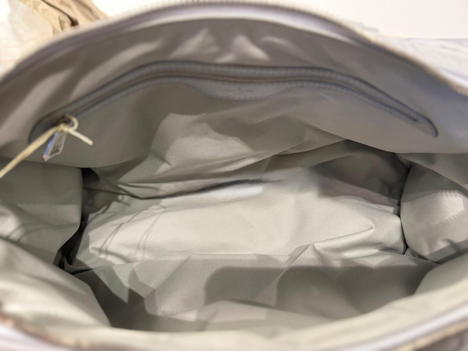 Borsone da viaggio Louis Vuitton Keepall Bandouliere 45 limited edition in color Frost Gardiant silver con hardware :Silver-tone. Il colore si sfuma dalla base nera all'apice grigio chiaro e il monogram è silver, nella parte frontale è decorato da un charm Monogram Flower e vi è un manico e una tracolla regolabile che permettono il comodo utilizzo a tracolla ( è presente, in aggiunta, un pezzo che permette l'allungamento della tracolla) . Il tessuto è di nylon con rifiniture in pelle di vacchetta e la fodera interna in tessuto, con doppia chiusura lampo e una pratica tasca interna con cerniera. Presenta un chip interno per il riconoscimento. (retail : 3700 USD )