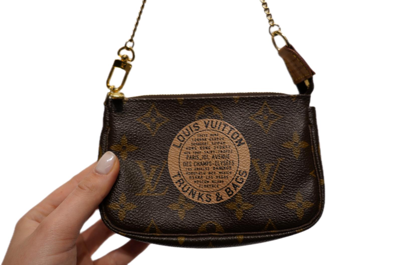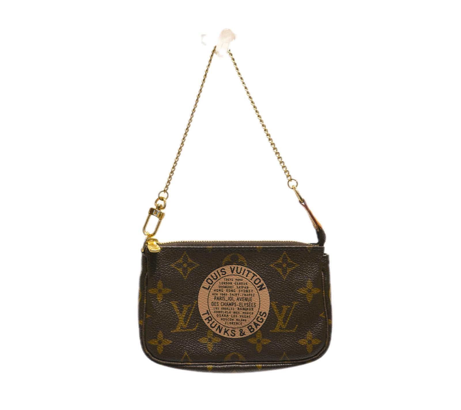 Mini Pochette Accessoires in edizione limitata Trunks & Bags in tela Monogram Louis Vuitton. Vacchetta mielata e metalleria oro.